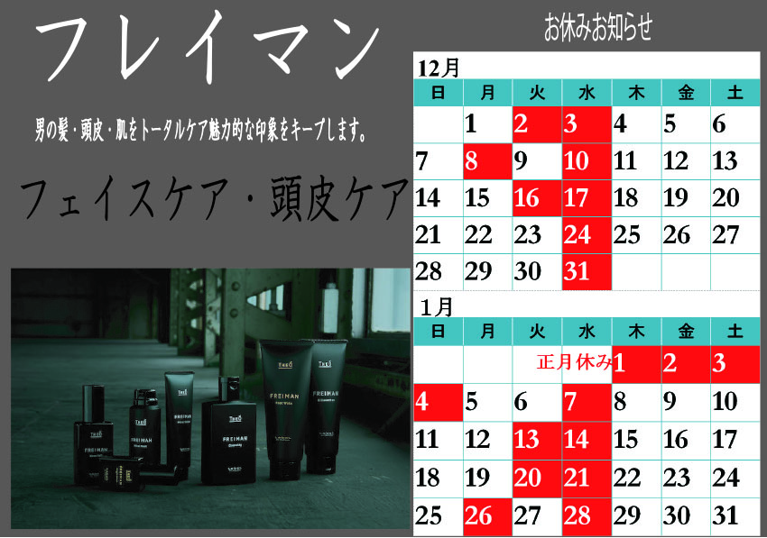 [休業日]毎週水曜日と不定期で休みあり・年末年始
